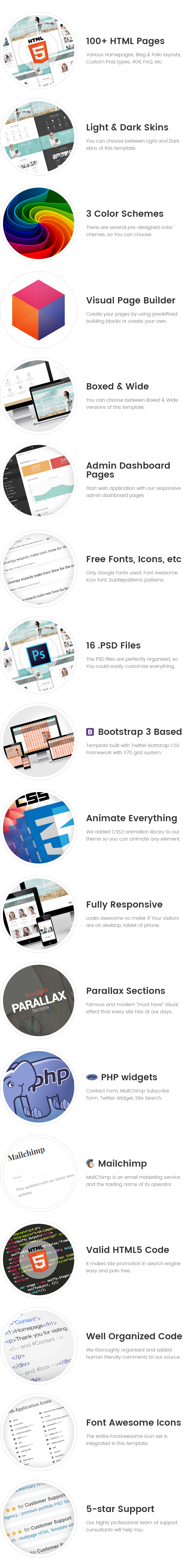We used Twitter Bootstrap v3 as CSS framework for this template.